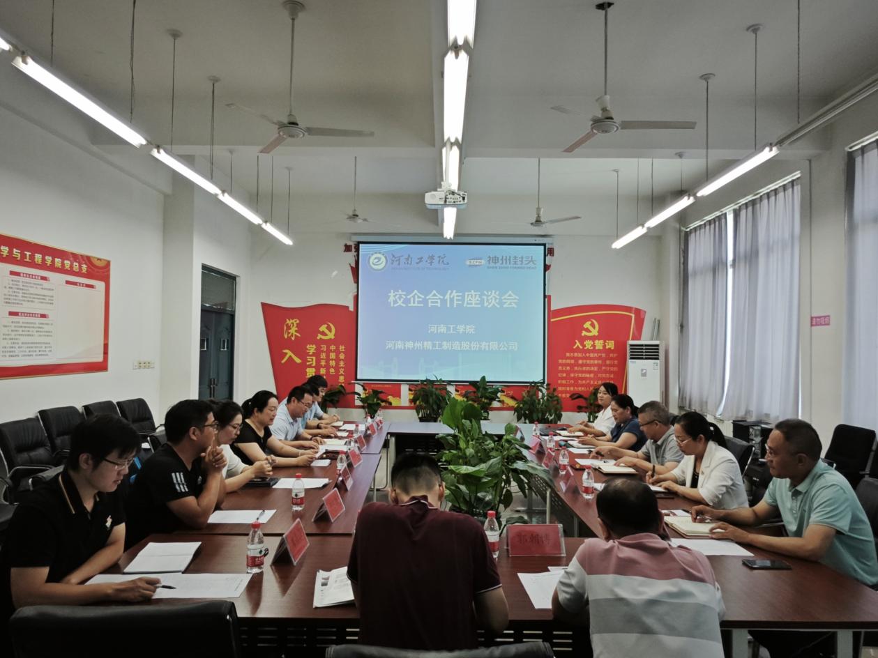 8月23日,河南工学院--河南神州精工制造股份有限公司(以下简称“神州精工”)校企合作座谈会在材料学院教5楼305会议室举行,神州精工公司总工王守东、副总工孙世清、企管副总孙娟、技术研发部经理岳晓露、实验室主任郜俊坤,校科研处,材料学院,机械学院和招生就业处负责人及相关教师参加了此次座谈会,会议由科研处副处长公永建主持。座谈会上,科研处处长郭祖华首先代表学校对王守东一行的到来表示欢迎,介绍了学校在学科建...
