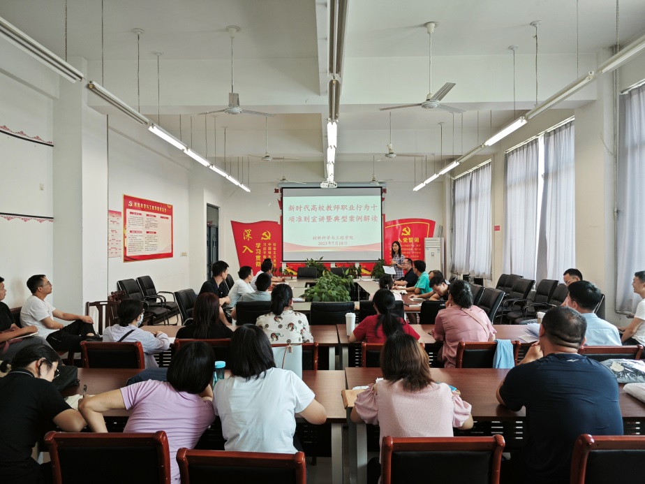 为深入学习贯彻习近平新时代中国特色社会主义思想和党的二十大精神,贯通学习习近平总书记关于教育的重要论述和指示批示精神,根据河南省教育厅《关于在全省教育系统做好师德集中学习教育的通知》要求,按照学校《关于开展师德集中学习教育的通知》的具体安排。材料学院于7月10日上午在教5楼305会议室,组织开展学习新时代高校教师职业行为十项准则暨典型案例解读学习会。会议由学院党委书记于明华主持,我院全体教师参加此次学...