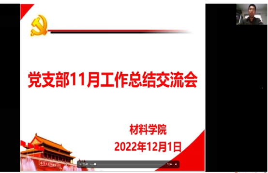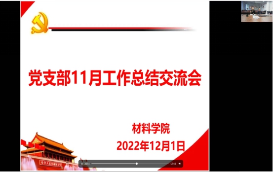 12月1日下午,材料学院党委在教学5号楼305会议室利用云端系统组织召开11月份支部工作汇报交流会,交流会由学院党委书记于明华主持,学院党委委员、各支部书记参加了会议。