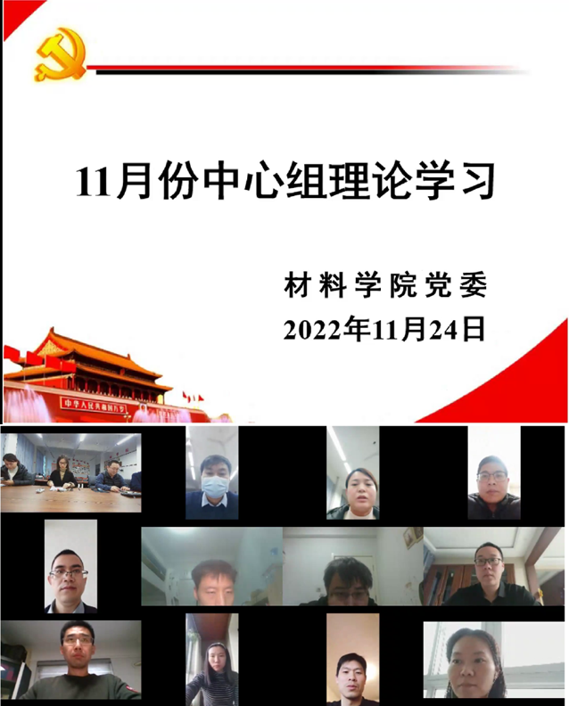 11月24日下午,材料学院党委理论学习中心组(扩大)学习会议召开。学院党委理论学习中心组成员、各党支部书记和科级以上干部参加了会议。会议由学院党委书记于明华主持。