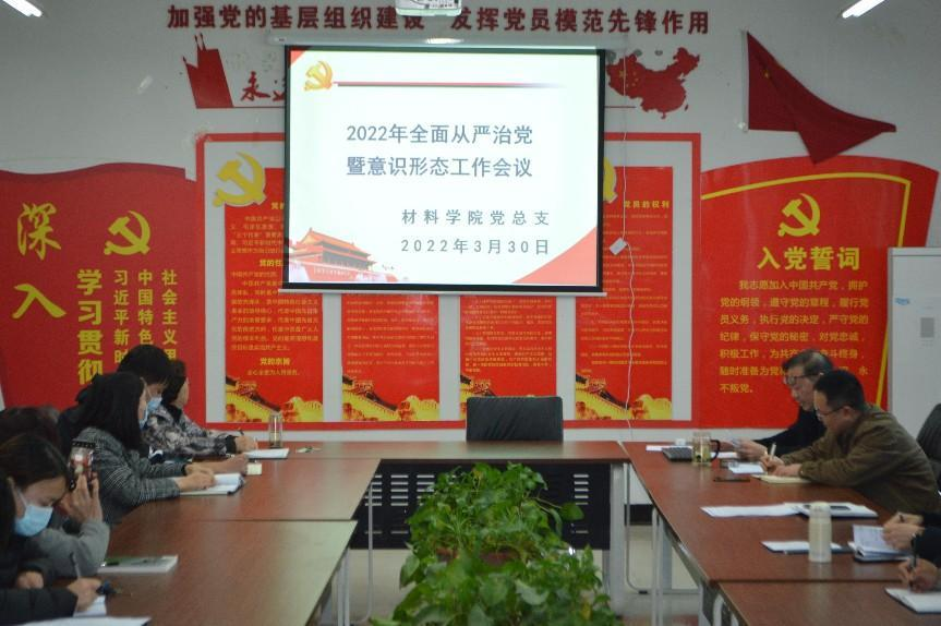 为认真贯彻落实学校全面从严治党会议精神,统筹推进学院全面从严治党工作,3月30日,学院党总支召开2022年全面从严治党暨意识形态工作会议。学院党总支书记贺福利主持会议。
