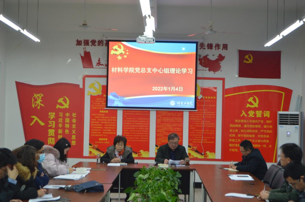 2022年1月4日,材料学院党总支在教5楼305室,组织召开了12月份中心组理论学习。材料学院全体中心组成员参加了会议,会议由党总支书记贺福利主持。