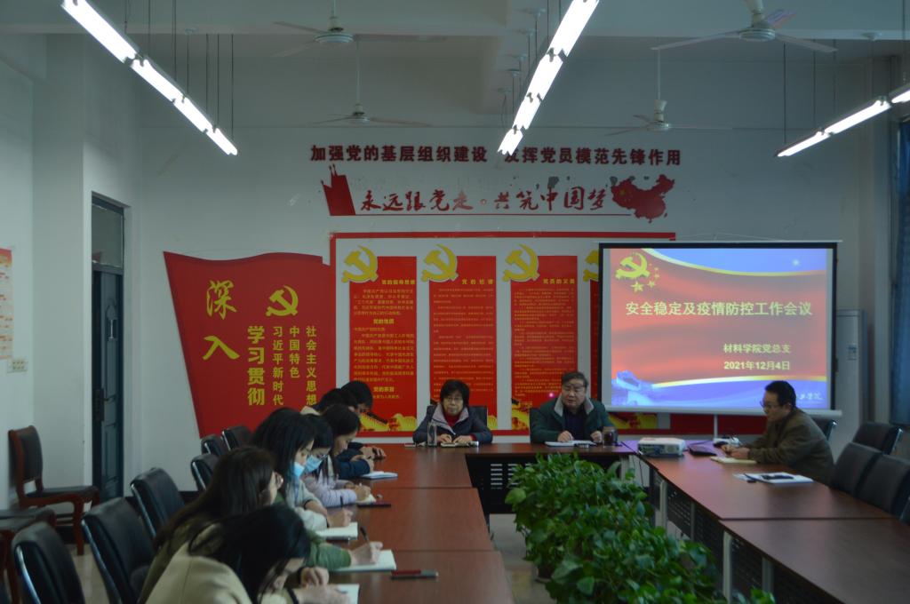 12月4日,材料学院党总支在教5楼305室,组织召开安全稳定及疫情防控工作会议,会议由材料学院党总支书记贺福利主持,学院班子成员、实验中心负责人及全体辅导员参加会议。会议传达了学校关于安全隐患排查和疫情防控工作有关安排,并对我院下一阶段的安全隐患排查和疫情防控工作进行再动员、再部署。