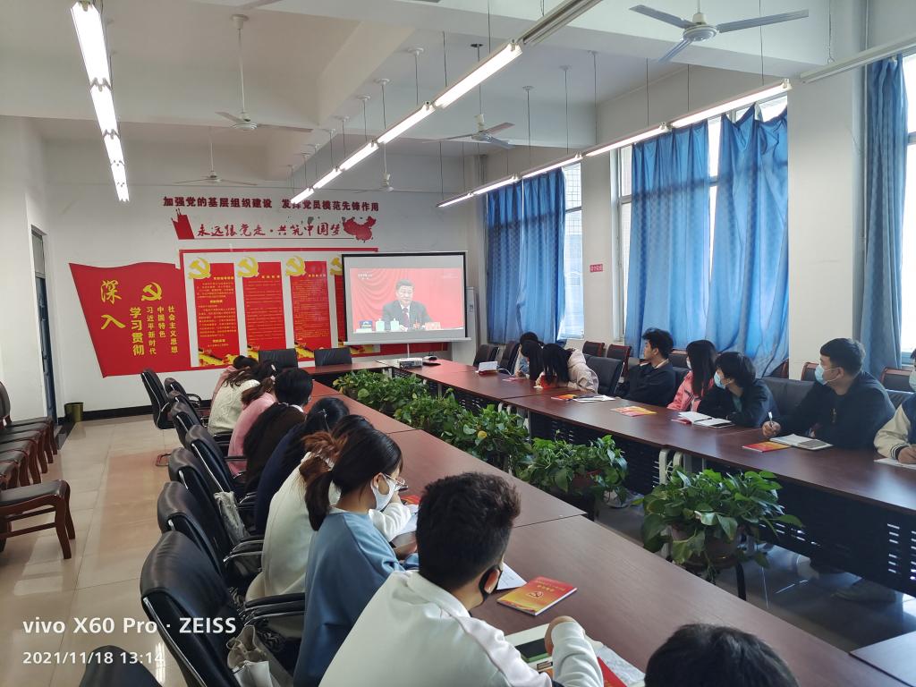 学生第一党支部和学生第二党支部也分别于11月18日组织支部党员集中学习了党的十九届六中全会精神。
