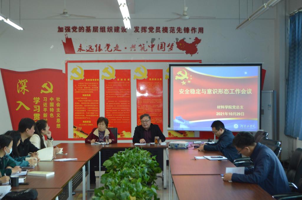 10月29日下午,材料学院在教5楼305会议室召开安全稳定与意识形态工作专题会议,会议由学院党总支书记贺福利主持,学院领导班子、科级以上干部及全体辅导员参加了会议。