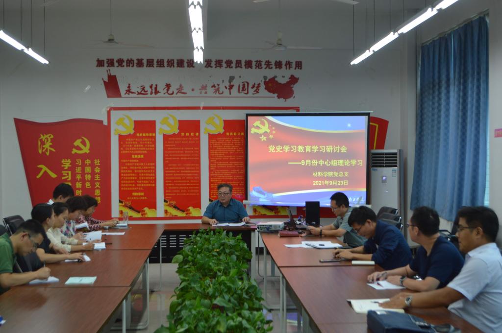 9月23日下午,材料科学与工程学院党总支在教5楼305室组织开展了党史学习教育讨论会,学院中心组全体成员参加了会议,会议由党总支书记贺福利主持。
