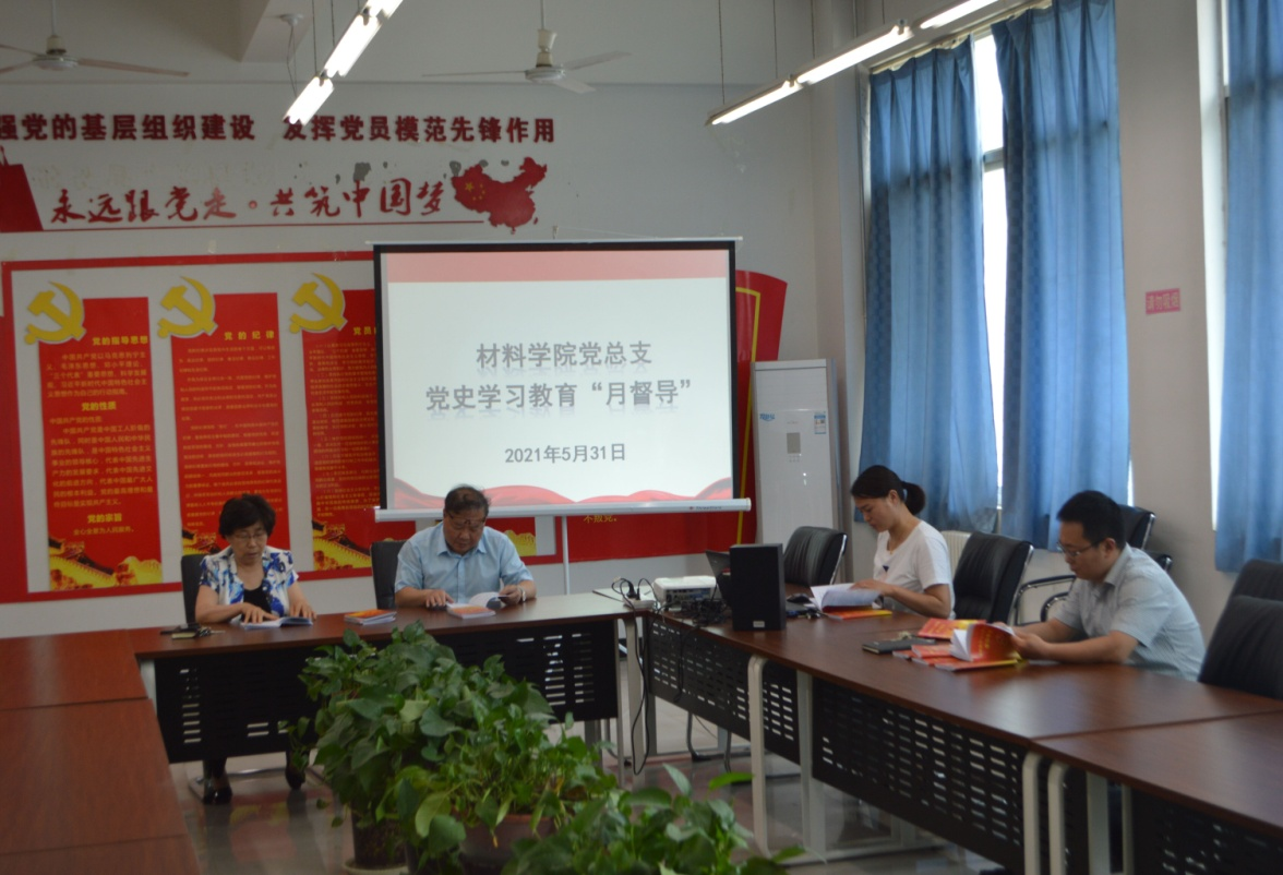 为使党史学习教育走深走实,抓在经常、融入日常,材料学院党总支于5月31日在教5楼305室开展了5月份党史学习教育“月督导”活动,学院党史学习教育督导组成员参加了督导活动,活动由党总支书记贺福利主持。