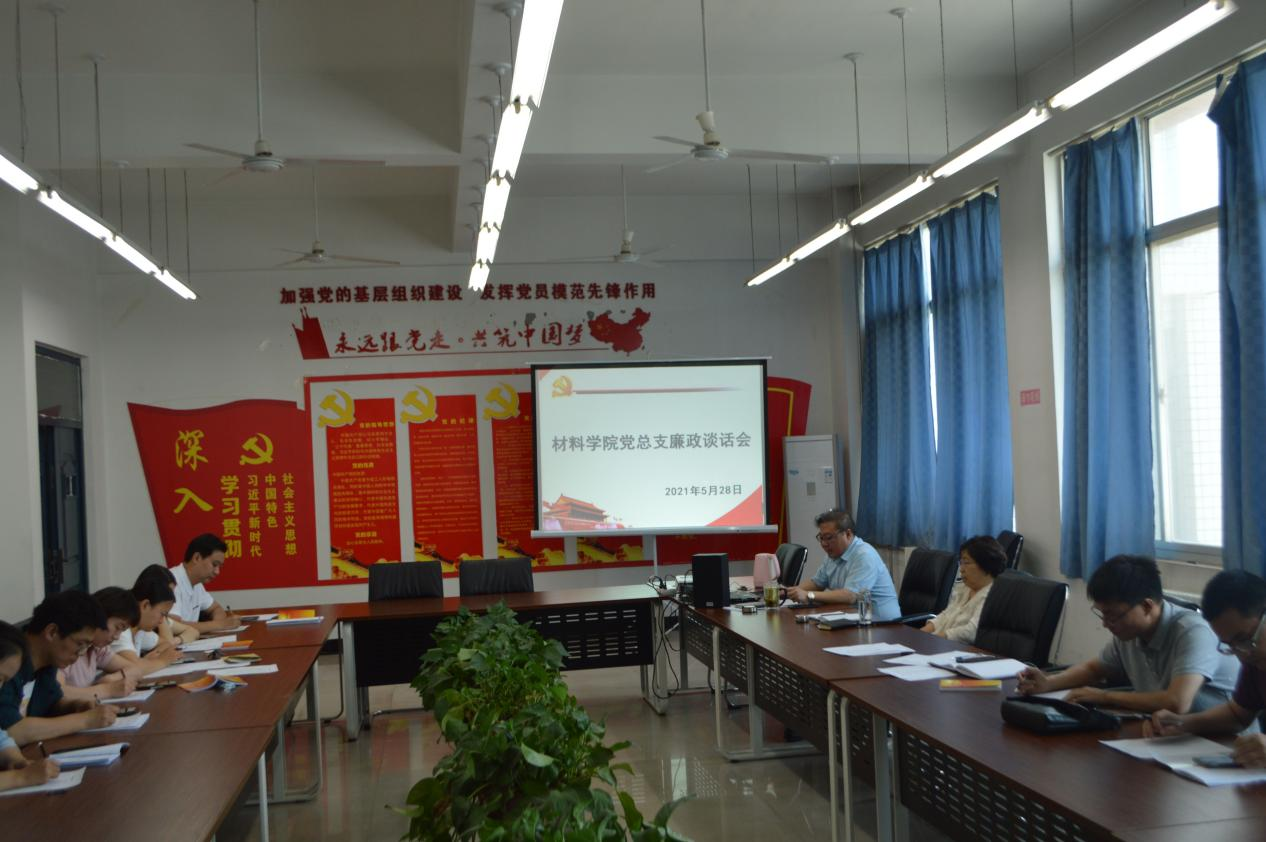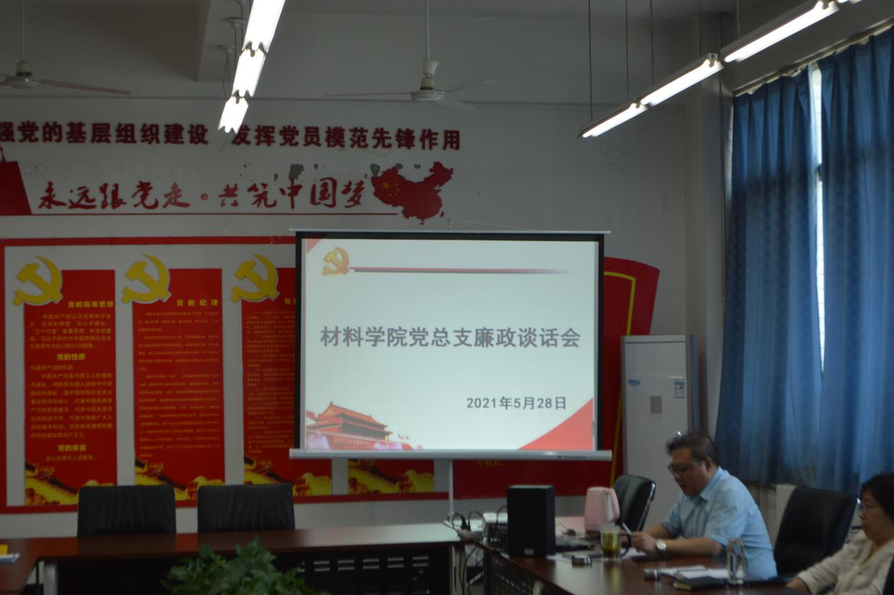 贺福利最后强调,在庆祝建党百年和全面开展学习党史之际进行廉政谈话,就是要深入学习和理解习近平总书记关于“全面从严治党,重在加强纪律建设”的深刻内涵,弘扬师德师风,创建风清气正的材料学院。希望大家从党史中汲取智慧力量,不断巩固发展风清气正的政治生态和良好育人环境,始终保持昂扬向上的精神状态,满怀激情投入工作,为我校高质量通过本科教学合格评估提供坚强保障。
