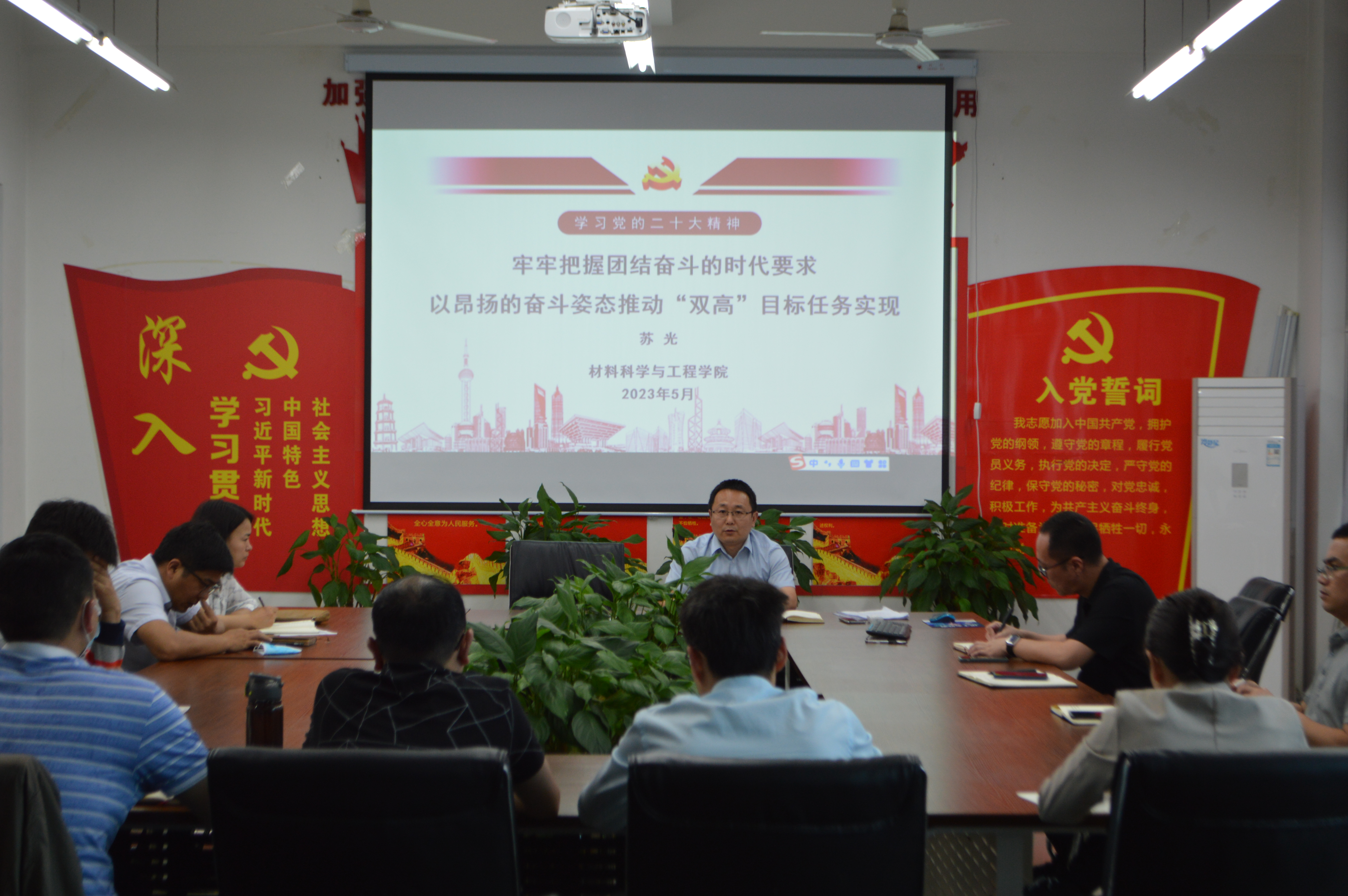 为推动学习贯彻习近平新时代中国特色社会主义思想主题教育深入开展,5月25日下午,材料学院院长苏光在教学5号楼305会议室,以《牢牢把握团结奋斗的时代要求,以昂扬的奋斗姿态推动“双高”目标任务实现》为题,为我院全体教职工讲专题党课。