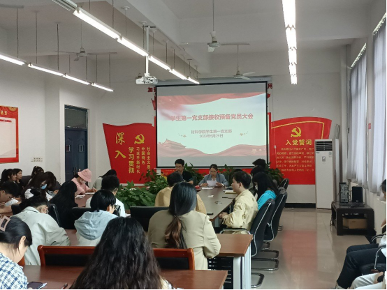 为进一步加强党员队伍建设,壮大党支部力量,激发党组织的生机与活力,根据《中国共产党发展党员工作细则》的规定,结合我校党支部工作要求,材料学院学生第一党支部分别于5月29日、5月31日,在教学5号楼305室召开接收预备党员、预备党员转正大会。会上审议、讨论、表决了接收白恒嘉等12名发展对象为预备党员的问题以及王怡杭等16名预备党员转正问题。支部组织委员张倩、全体党员参会,大会由支部书记张庆同志主持。