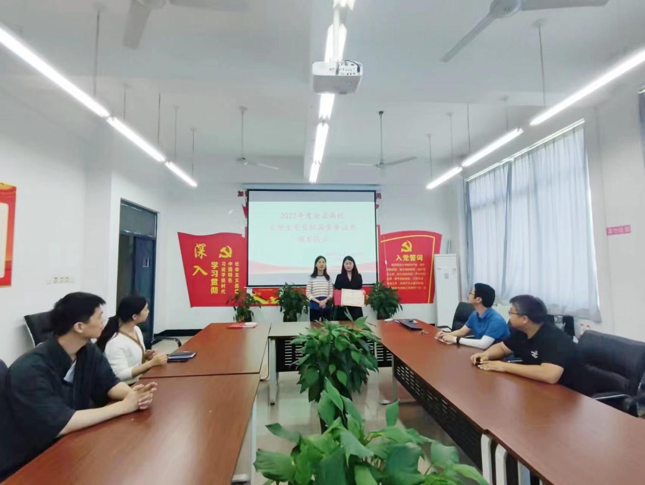 为深入学习贯彻落实习近平总书记关于青年工作重要论述精神,全面加强大学生党员队伍建设,落实立德树人根本任务,进一步发挥优秀大学生党员标杆作用,汇聚榜样力量,2023年6月6日上午,材料学院在教五305举行2022年河南省高校“大学生党员标兵”颁奖仪式。材料学院党委书记于明华、党支部书记以及获奖学生等参加了颁奖仪式。