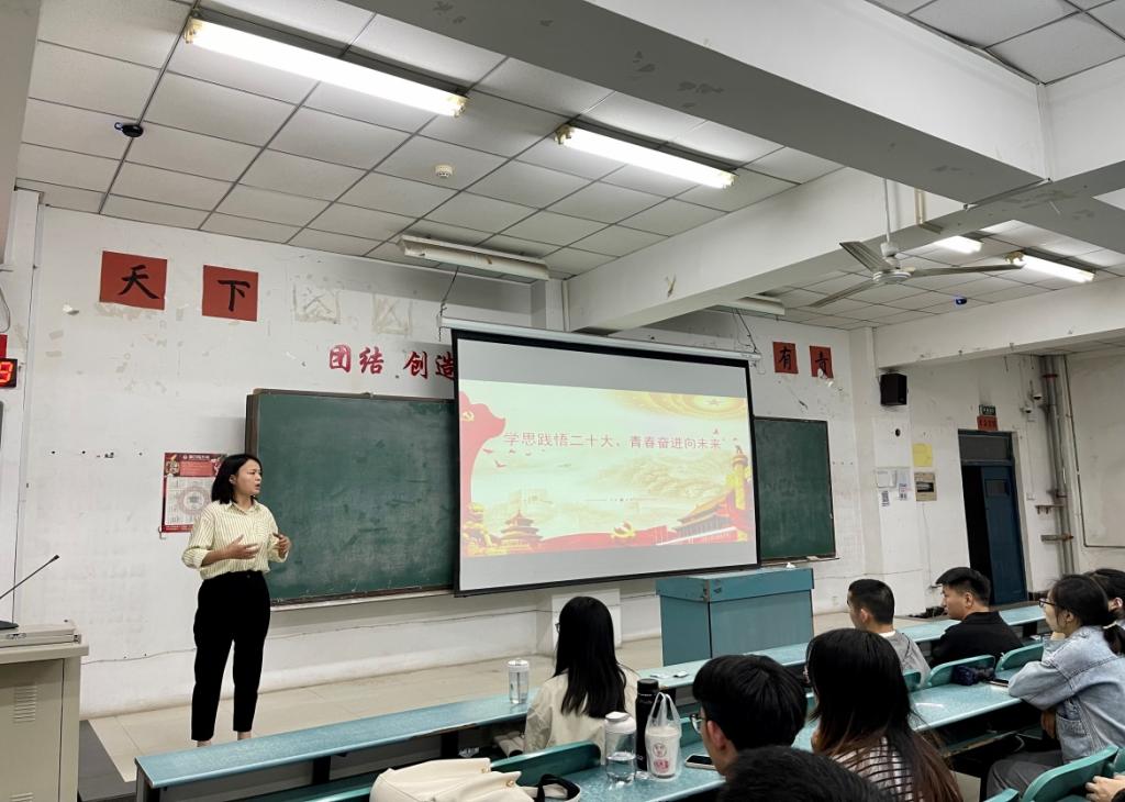 为进一步激发大学生的时代感和使命感,引导学生树立正确的人生目标,5月10日,材料学院党委副书记周慧琳在教学楼1号楼A304为学院学生讲《学思践悟二十大、青春奋进向未来》专题党课,大三学生共计50人参加了此次党课。