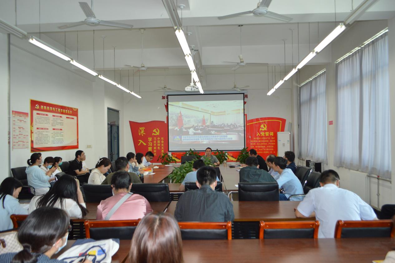 6月1日下午,材料学院在教学5号楼305会议室组织开展全体教职工政治理论学习,深入学习二十届中央国家安全委员会第一次会议精神和中共中央政治局第五次集体学习会议精神。学院全体教职工参加了会议,会议由材料学院院长苏光主持。