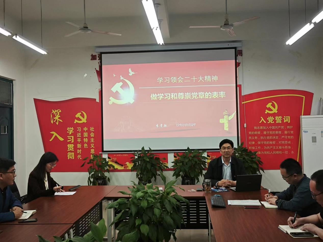 5月4日下午,校党委副书记李贵敏在教学5号楼305会议室,以《学习领会二十大精神 做学习和尊崇党章的表率》为题,为材料学院全体党员和教职工上了一节生动的党课。