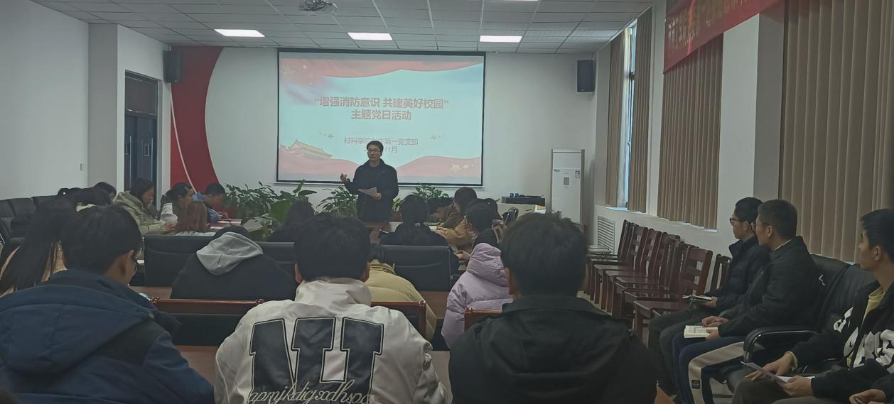 为全面提高党支部全体党员消防安全意识,增强学生防火防灾意识,提高防火应急事件处置能力,11月16日,材料学院学生第一党支部举办了“增强消防意识共建美好校园”消防安全知识宣传主题党日活动。