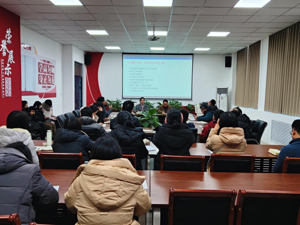 于明华指出,全体教职工要以习近平新时代中国特色社会主义思想为指导,全面贯彻落实党的二十大精神,坚持稳中求进工作总基调,完整、准确、全面贯彻新发展理念,加快构建新发展格局,着力推动高质量发展。一是强化责任意识,以科技创新引领现代化产业体系建设为重点任务,努力做好科技成果转化,助力地方和国家经济发展。二是抓好人才培养质量,以本科教学工作诊断评估为契机,紧握专家开出的问题清单不松手,逐条逐项建账立卡、对账销号,扎实推进人才培养质量提升工作,培养真正适应新时代需要的人才。三是扎实做好毕业生就业工作,帮助学生了解当前的经济形势、行业发展趋势以及人才需求情况,引导学生找准自身定位,做好职业规划,助力毕业生高质量就业与发展。四是强化风险意识,全院上下同心同德,切实做到四个“抓落实”,严格落实意识形态工作责任制,积极防范化解可能存在的风险隐患,服务保障全院更好聚焦“双高”建设核心任务,全力推动学校发展。