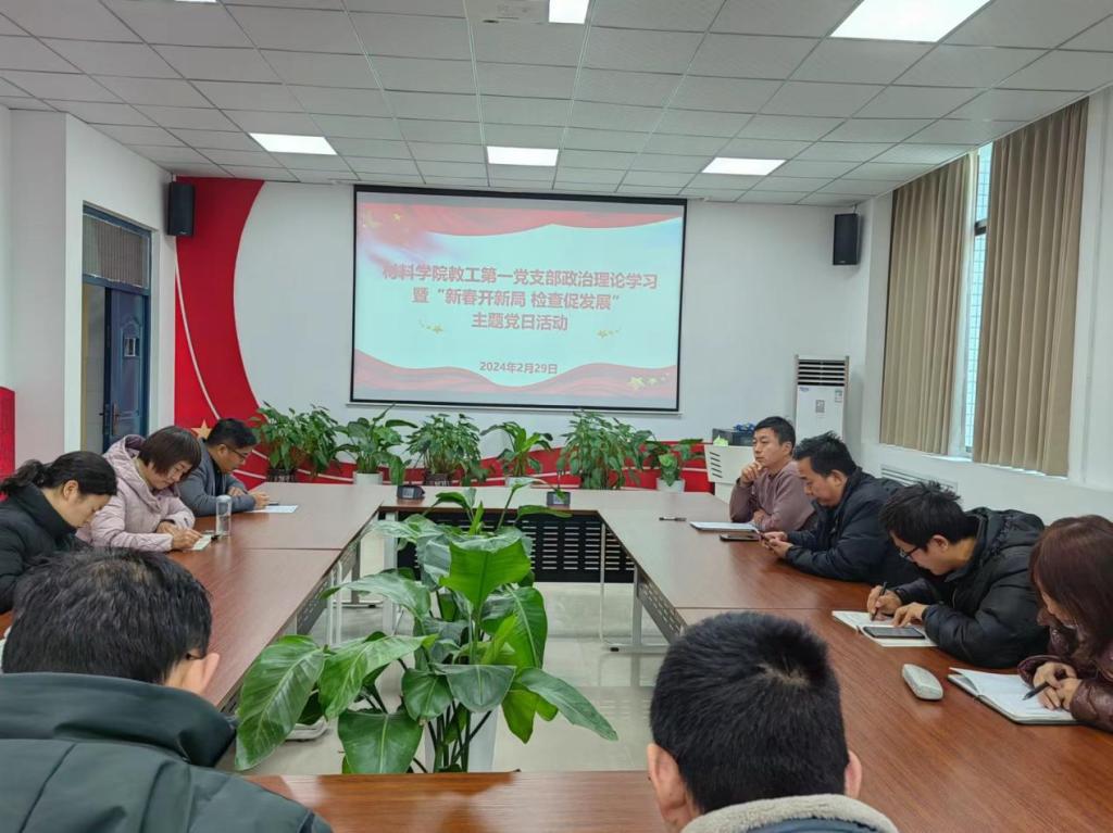 2024年2月29日下午材料学院教工第一党支部在教5楼305开展政治理论学习暨“新春开新局 检查促发展”主题党日活动。教工第一党支部全体党员参加会议,会议由支部书记席文昌主持。