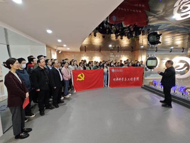 学校本科教学合格评估工作已进入倒计时,决战评估的冲锋号角已吹响,为促进我院教师深入了解学校历史,明确人才培养定位,坚定信心鼓足干劲做好迎评促建工作。4月6日下午,材料学院党委组织学院全体教师在我校校史馆开展“坚定信心鼓足干劲迎评估”主题党日活动,统一思想、提振精神,进一步提升全体教师迎评促建的紧迫感、使命感和责任感。
