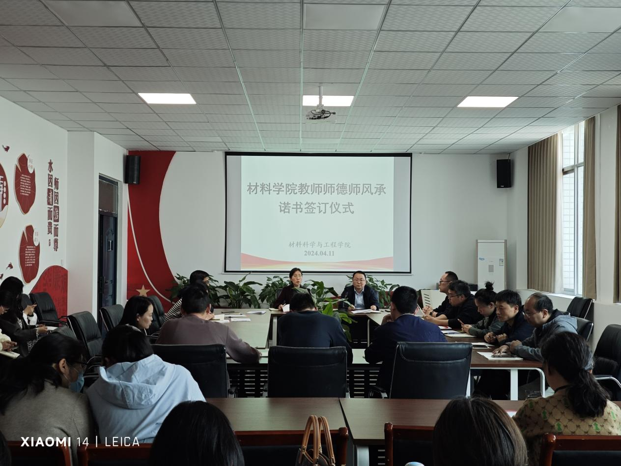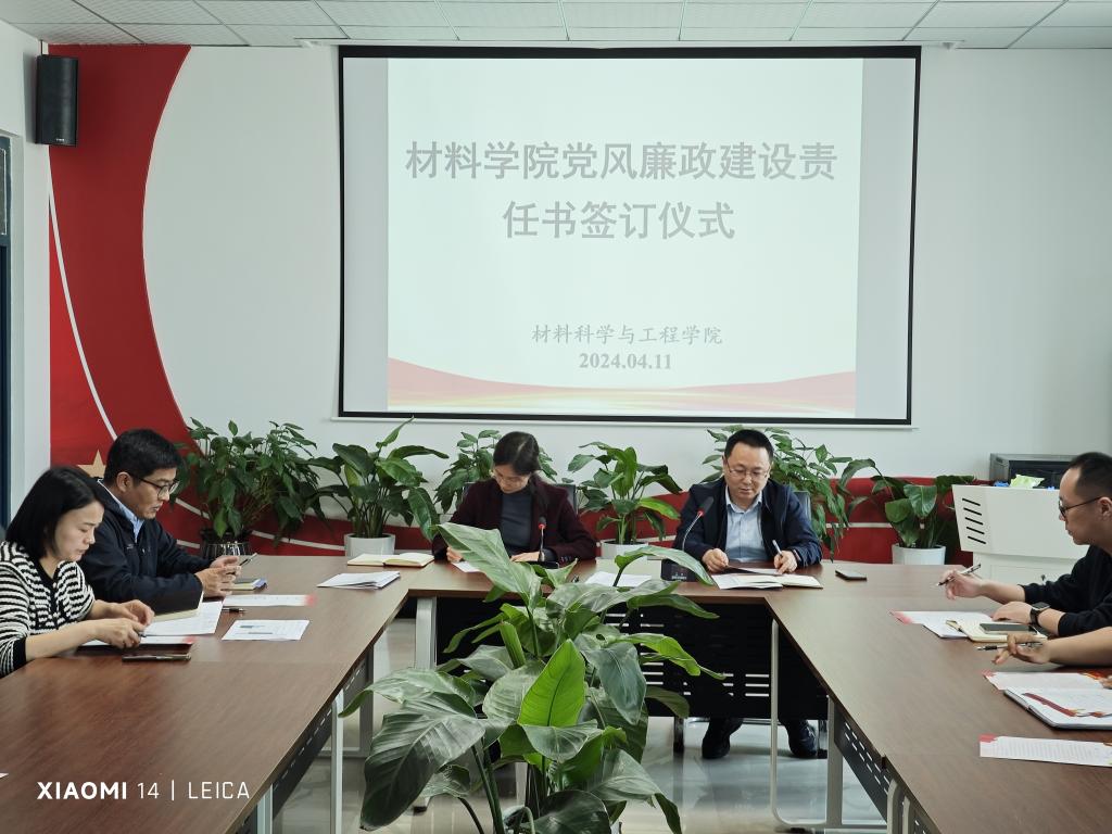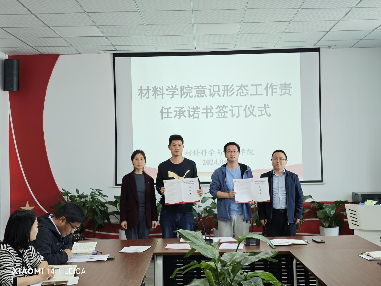 为进一步确保学院意识形态工作、党风廉政建设、师德师风建设落实到位,4月11日,材料学院在教学5号楼305会议室举行2024年度意识形态工作责任承诺书、党风廉政建设责任书和师德师风承诺书签订仪式,全体教师参加会议,会议由党委书记于明华主持。