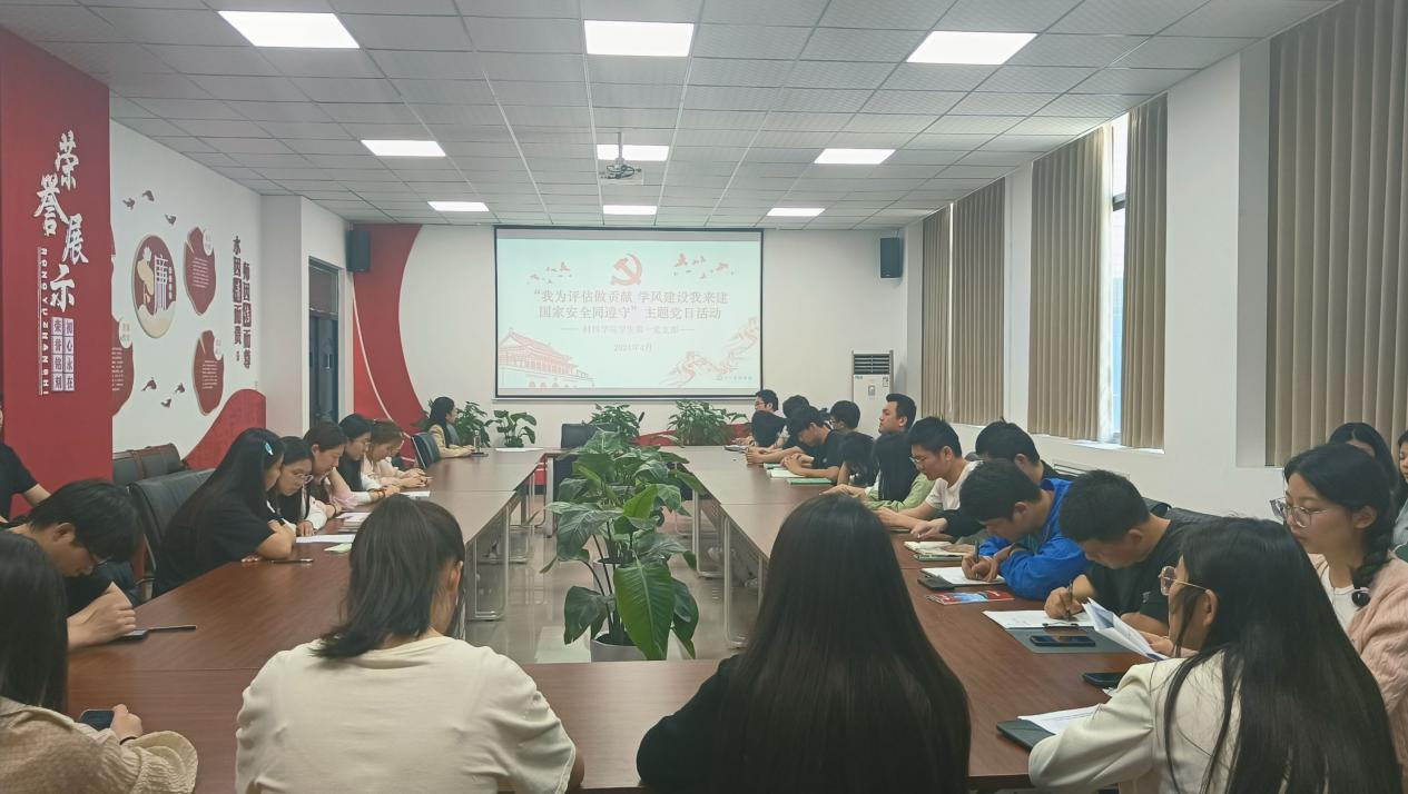 2024年4月18日,材料学院学生第一党支部在教学楼五号楼305召开了“我为评估做贡献 学风建设我来建 国家安全同遵守”主题党日活动。支部全体党员参加,会议由张庆同志主持。