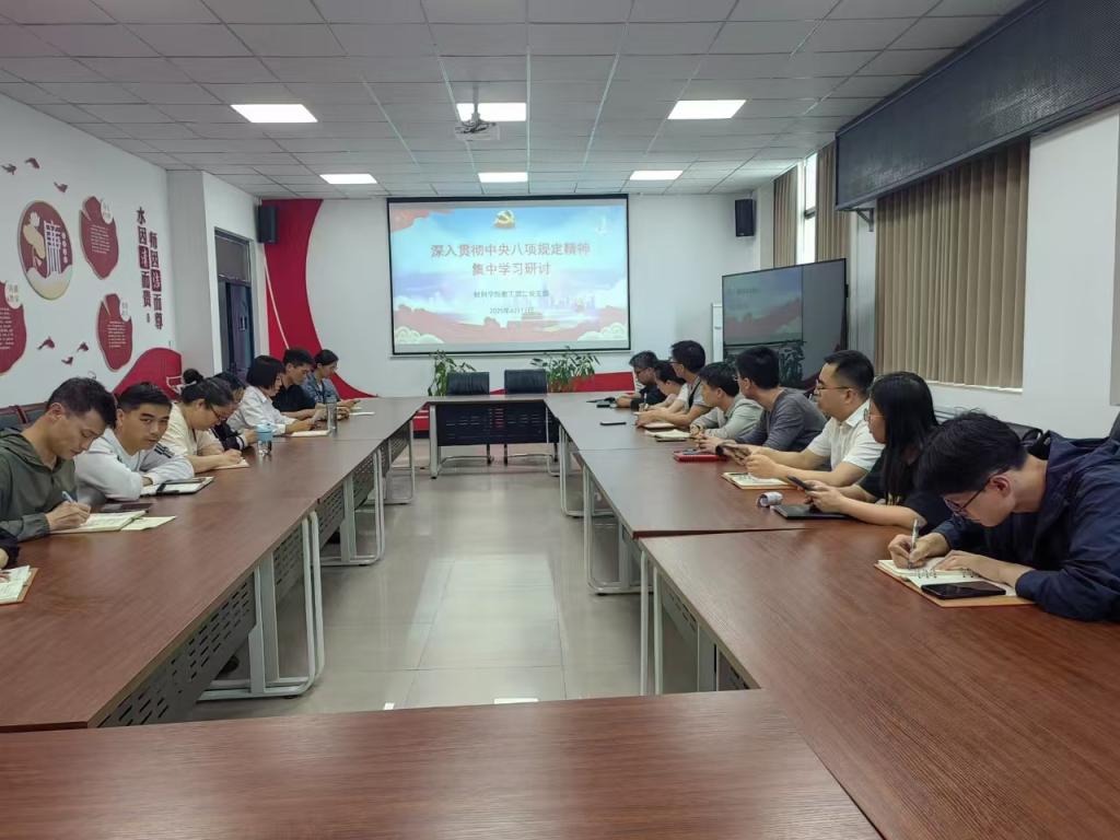 4月17日,材料学院教工第二党支部于教5楼305会议室开展深入贯彻中央八项规定精神学习专题研讨,党总支全体党员围绕深入贯彻中央八项规定及其实施细则精神进行学习交流。材料学院党委书记于明华参加会议。材料学院教工第二党支部书记丁海主持会议。