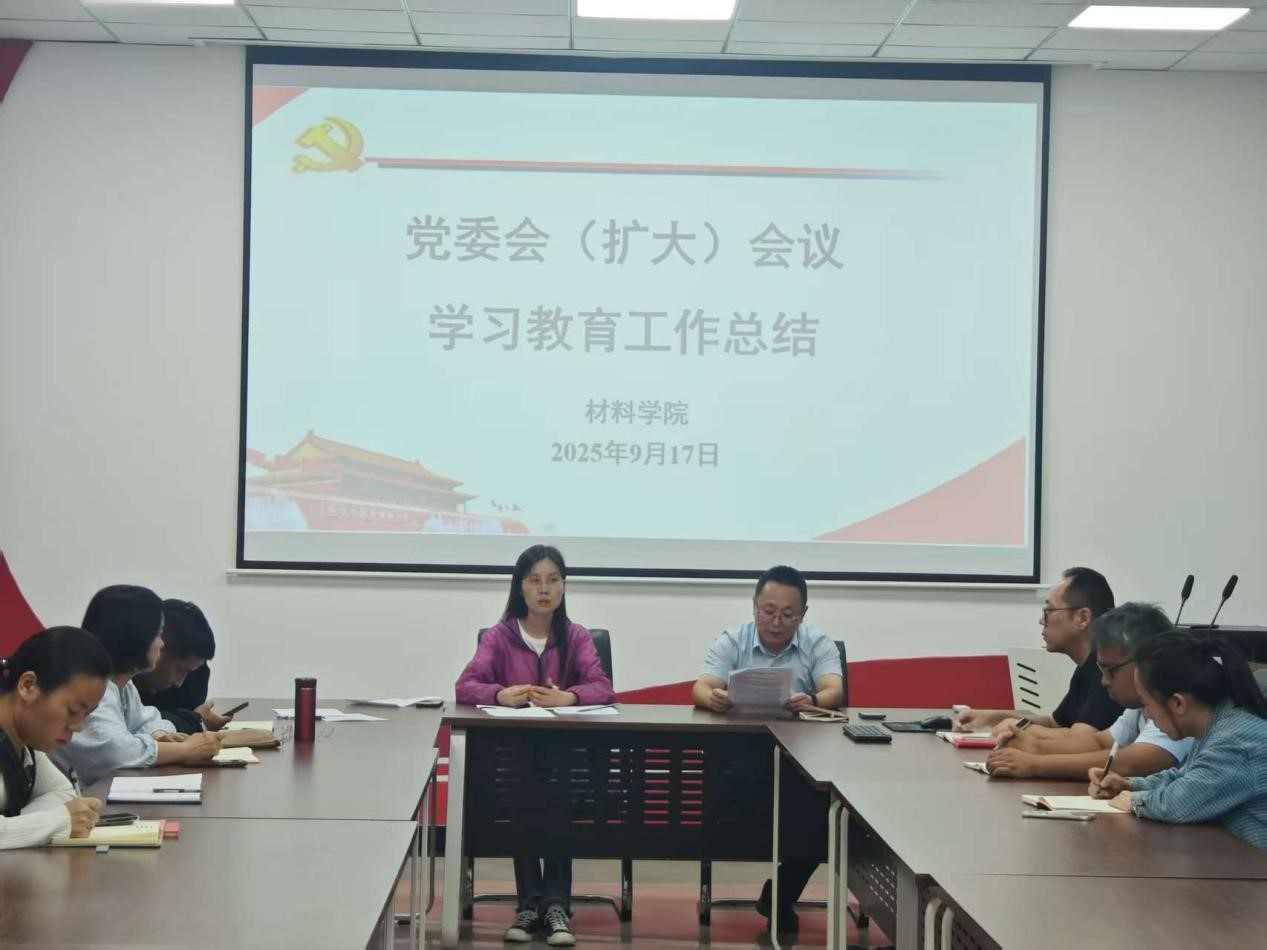9月17日下午,材料学院召开党委会(扩大)会议,深入学习习近平总书记关于深入贯彻中央八项规定精神学习教育的重要指示,传达中央党的建设工作领导小组会议和学校学习教育总结大会精神,全面总结我院学习教育工作开展情况,研究部署推进作风建设常态化长效化工作。材料学院领导班子、支部书记和科级干部参加会议,会议由材料学院党委书记于明华主持。