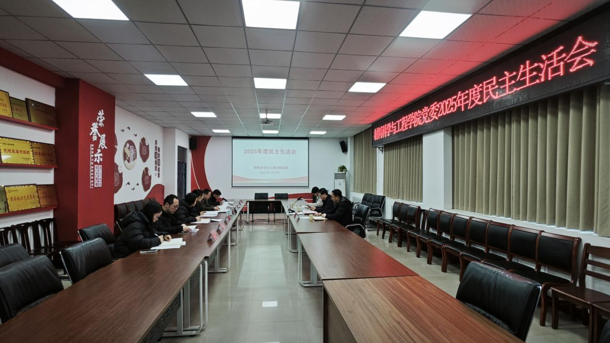 1月27日上午,材料学院党委在教5楼305室召开了2025年度民主生活会。校党委委员、纪委书记秦建辉莅临指导,校督导组其他成员、学院领导班子、党委委员参加了会议。会议由学院党委书记于明华主持。