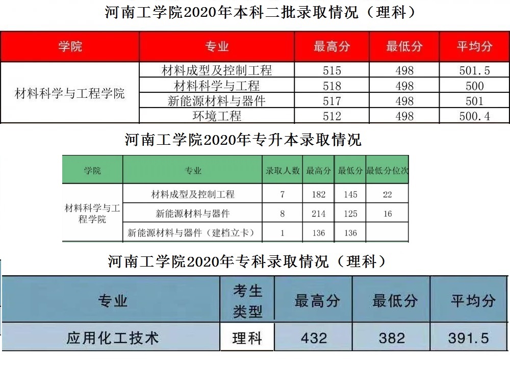 材料学院2019年、2020年录取分数情况