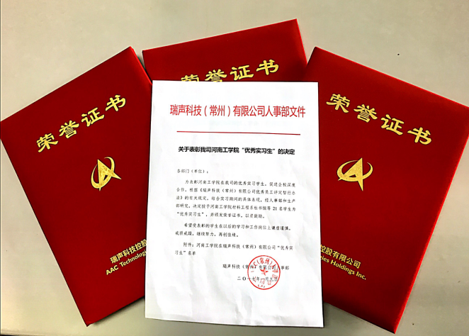 优秀实习生荣誉证书