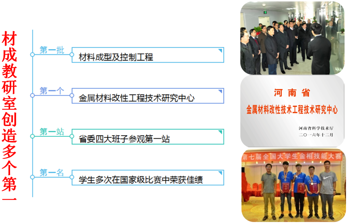材料成型及控制工程专业每年考取研究生的比率均为全校最高,考取985、211及其他重点大学研究生的比例和人数也均为全校最高。专业学生参加全国金相大赛、互联网+创新创业大赛等比赛多次获得一等奖,专业毕业生一次就业率达到98%以上。