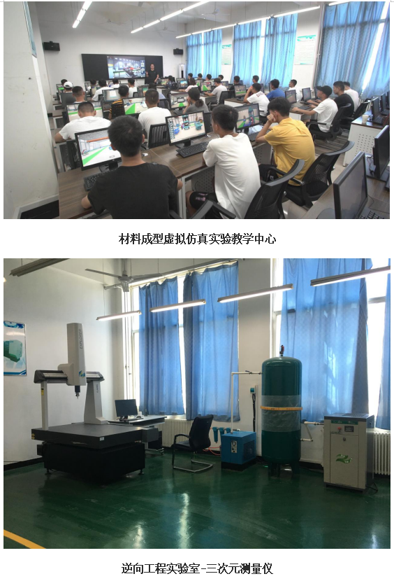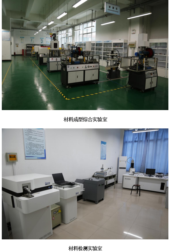 校内外实习实训基地:专业建设有河南省金属材料改性技术工程技术研究中心、新乡市材料成形与加工工程技术研究中心和新乡市材料成形技术与模具重点实验室等省、市级科研平台,是河南省材料成型及相关领域人才培养及技术研发的重要基地。专业教学注重理论联系实际,与河南省天利工业炉有限公司、新航集团等建立产学合作基地,并在中国一拖集团有限公司、郑州宇通有限公司、金龙精密铜管集团股份有限公司、鹤壁天汽模汽车模具有限公司等建立了校外实习基地。校内专业实训基地建筑面积2000余平方米,设备总资产2500多万元。包括材料成型虚拟仿真实验教学中心、逆向工程及3D打印实验室、液压成形试验平台、材料分析实验室、力学性能实验室、材料成型综合实验室、特种加工实验室等20个设备先进功能齐全的校内实验实训室。