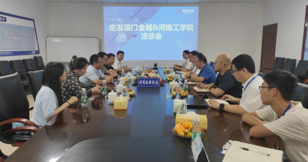 宏发电声股份有限公司副总裁兼第五事业部部长兼厦门金越总经理唐启洪、舟山金越总经理张东升、舟山金度总经理查正华、舟山金越人事部经理乔鼎磊、厦门金越人事部经理黄彩云以及相关技术骨干等对材料学院访企教师团队表示热烈欢迎,并介绍了企业发展历程、公司架构、企业文化以及未来布局等情况,并表达了希望双方今后加强交流合作的意愿和设想。材料学院苏光院长一行深受宏发企业文化氛围的感染,对第五事业部的自动化水平、生产规模、生产效率、管理水平等深表震撼,同时对宏发电声股份有限公司第五事业部的热情接待表示深深的感谢,介绍了材料学院的专业特点、办学特色、人才培养优势和未来发展方向等。双方就人员培训、实习就业、技术研发等方面的进一步合作达成了共识,为促进毕业生高质量就业打下了坚实基础。