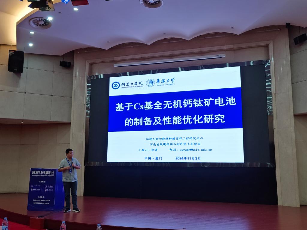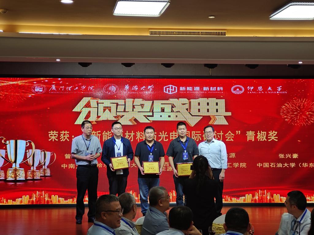 会议期间,我院青年教师徐源博士在青年科学家论坛上做了题为《Cs基全无机钙钛矿太阳电池的制备及优化研究》学术报告,汇报交流了关于路易斯酸与钙钛矿晶体缺陷钝化的作用机理,以及探讨了载流子传输过程中的动力学相关问题,并在评奖环节获得了“青椒奖”。此次会议,有助于提升了材料学院在光电能源领域的知名度和影响力。会后,徐源与知名院校的学者进行了充分交流,不仅拓宽了研究视野,还结识了许多理念相近的专家学者,为未来可能展开的科研合作铺设了一条坚实的道路。