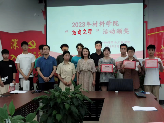 为鼓励学生养成良好行为习惯,提高身体素质,培养健康的人格和积极向上的精神,营造轻松、愉悦、和谐的校园氛围,材料学院于5月22日学风建设月系列活动之“运动之星”活动颁奖仪式,由张庆、李静老师主持。