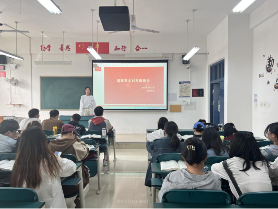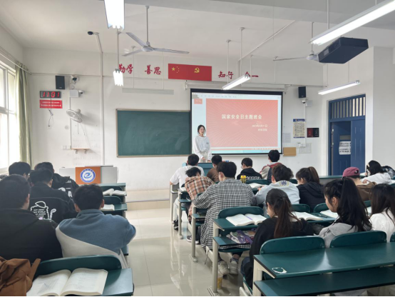 各班首先围绕国家安全教育开展主题班会。由各班负责人先向各位同学对国家安全的含义进行解释,然后广泛开展宪法和国家安全法、反分裂国家法、国防法、反恐怖主义法、数据安全法、生物安全法、网络安全法、反间谍法、反有组织犯罪法等涉国家安全法律法规的宣传教育,引导学生进一步增强安全意识和法治观念,自觉守法护法,让同学们坚持以习近平新时代中国特色社会主义思想为指导,牢固树立和全面践行总体国家安全观,树立国家安全底线思维,强化责任担当。