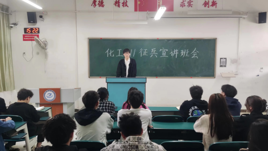 为鼓励在校大学生积极参与应征入伍,提高国家兵源质量,同时也为配合我校正在开展的大学生征兵工作,材料学院在全院范围内开展了大学生征兵入伍宣传主题班会。