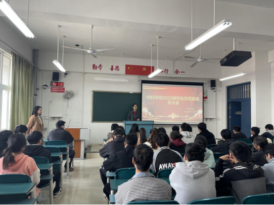 为进一步加强和做好毕业生就业工作,教育和引导毕业生正确认识当前的就业形势,树立正确的择业观、就业观,材料学院于3月15日在教学七号楼229教室举行了2023届毕业生就业动员会。