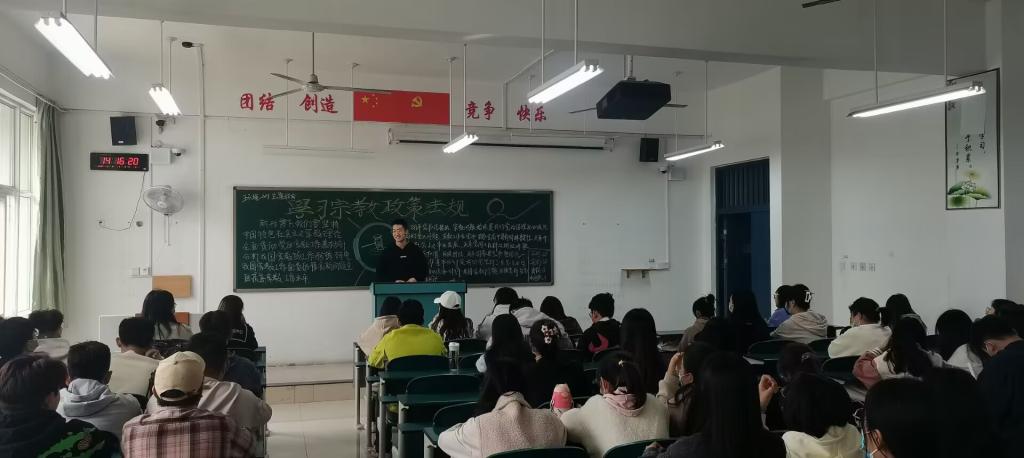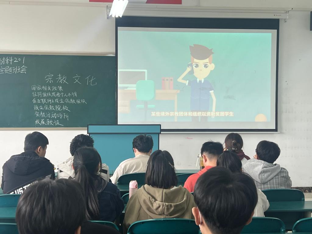 为切实加强中国特色社会主义民族宗教理论、党的民族宗教政策和国家有关法律法规的宣传教育,引导大学生崇尚科学,树立正确的宗教观。材料学院在2022年10月8日下午于教七召开学习宗教政策法规主题班会。