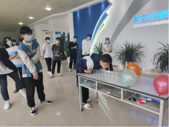 材料学院于10月1日下午4点半在教学5号楼举办了双人夹气球比赛,这个项目集技巧、速度与合作为一体。在活动场上,同学们们全力投入,卯足了劲,奋力争取第一,场下拉拉队员呐喊加油,场上场下充满了激情和欢乐,充分展现了同学们的团队协作精神。