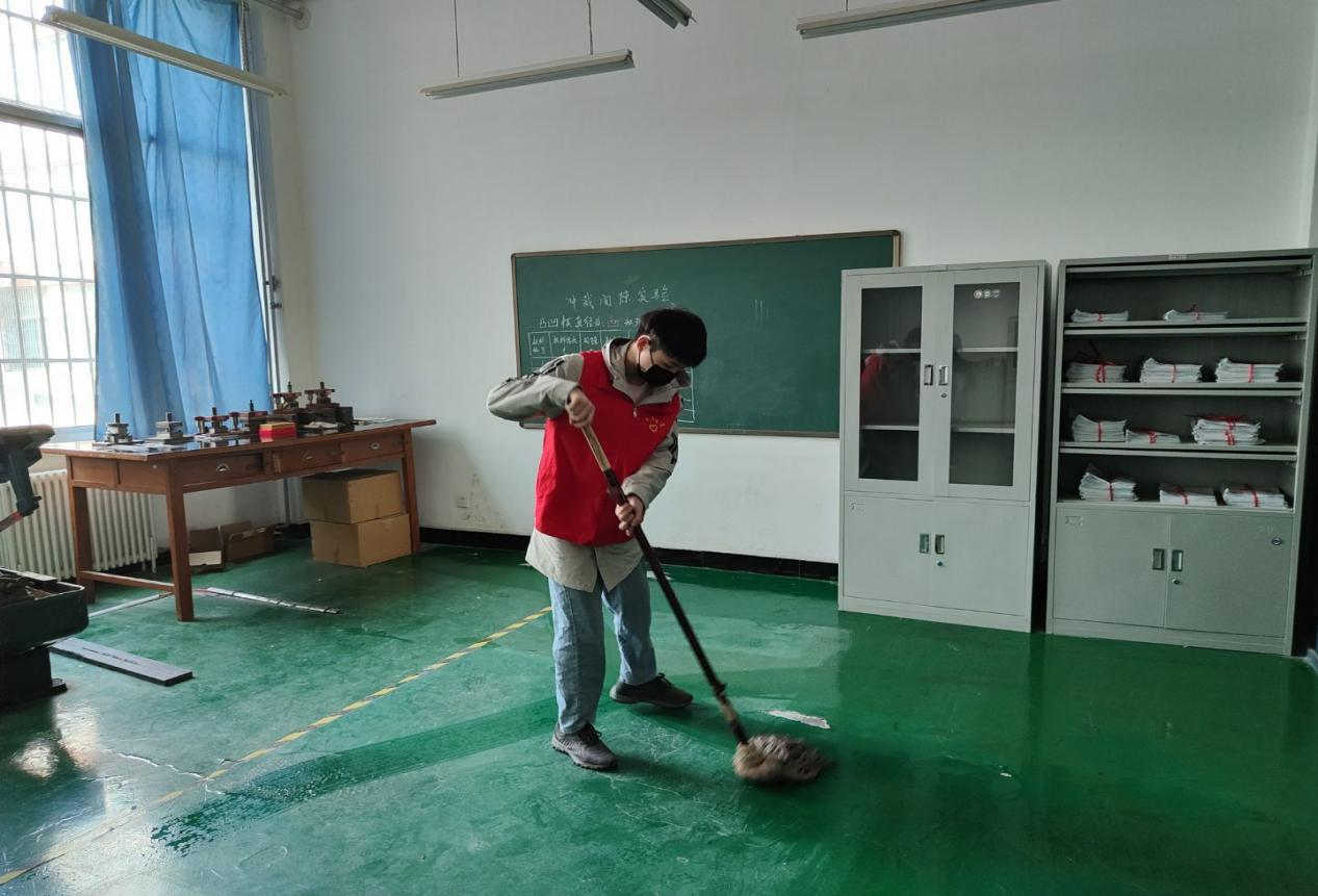 活动伊始,志愿者们按照规定时间在教学五号楼门口集合完毕,负责人清点人数并分发志愿服装,并提醒志愿者们活动注意事项,随后,开始了此次实验室清扫志愿活动。活动过程中,志愿者们分组开展对实验室的清扫工作。此次志愿活动培养了学生吃苦耐劳、无私奉献的精神,弘扬了“奉献、互助、友爱、进步”的志愿者精神。