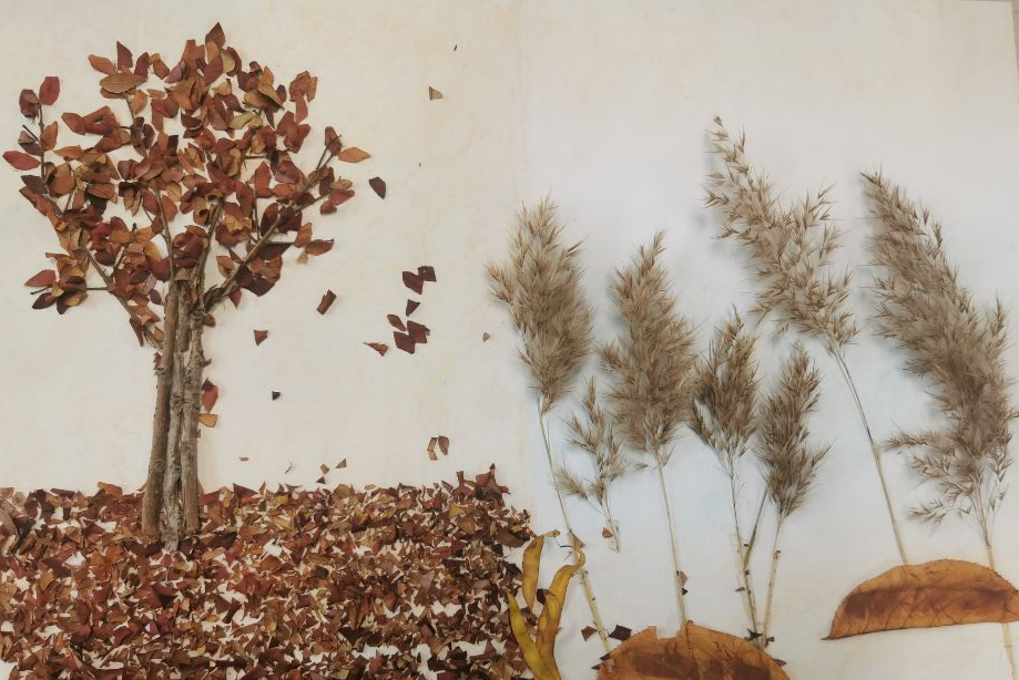 本次活动分为个人赛及团体赛两种模式,各参赛选手就地取材,结合原材料地形状、颜色等特征,将落叶、芦苇、枯枝等进行灵活巧妙地单配,并赋予其新的生命,制作出各类暖心作品。经过层层选拔,最终七幅作品脱颖而出被推选至校赛环节。