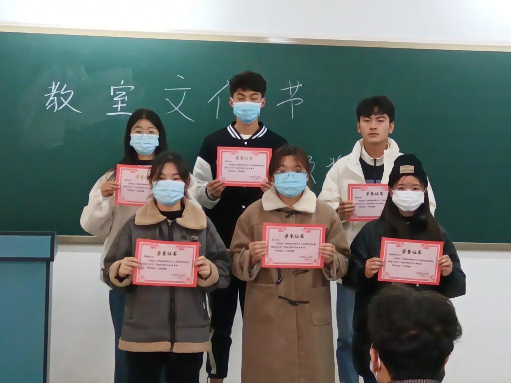 在本次活动中,同学们积极参与,充分发挥自身特长,展现出各专业特色的学习风貌和浓郁的班级文化,学院评定小组以教室整洁、教室创意、专业特色为评分标准对所有参赛教室进行评比,最终环境21班、新能源202班所在教室荣获“优秀教室”称号,新能材料212班、环境212班、材成201班,材科20班所在教室荣获“文明教室”称号。