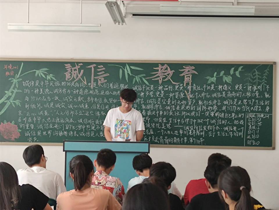 为使学生充分认识诚信教育活动的重要性,树立诚信观念、增强法律意识,有效地将诚信教育转化为大学生自觉的素养与行为。我院于6月10日在各班责任教室开展了诚信教育主题班会。