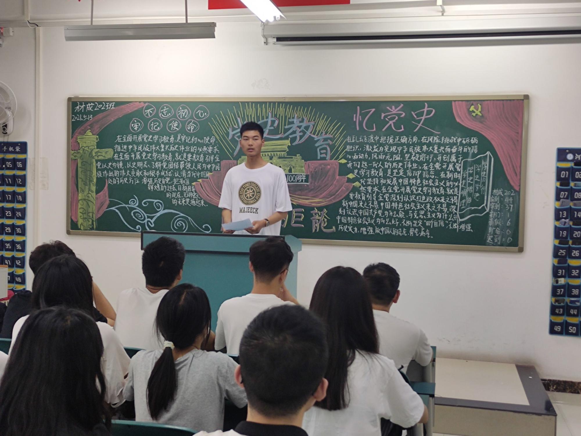 为深入推进党史学习教育,材料学院于5月13日在各班责任教室积极开展了“党史学习”的主题班会。