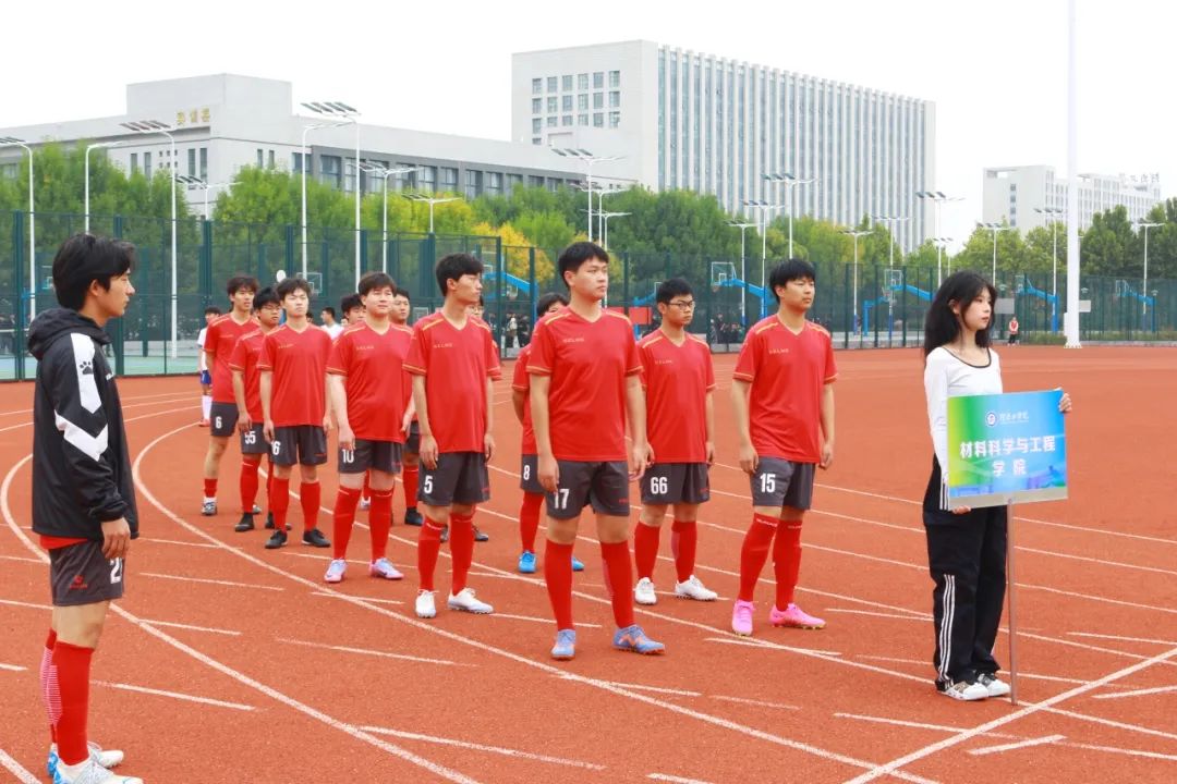 其次靳守国书记为本次开幕式致辞,运动员代表和裁判员代表宣誓,王麒翔老师宣读本次比赛纪律,最后由靳守国书记宣布此次迎新杯足球赛开幕。本次比赛在材料学院与机械学院间精彩展开。