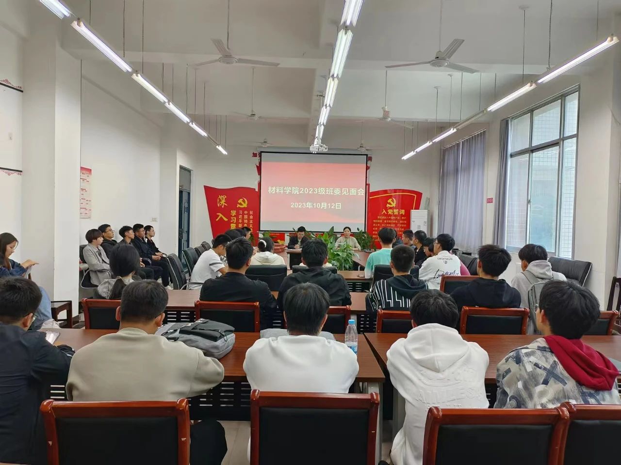 为了更好服务同学,增强班级凝聚力,加强学院班风、学风建设,10月12日,张俊芳和魏甫豫两位辅导员老师于教五305组织召开学院全体2023级新生班委见面会,并进行专题培训。此次活动旨在通过学习与交流,帮助新组建的班委迅速进入工作状态,为同学们营造更好的学习和生活氛围。