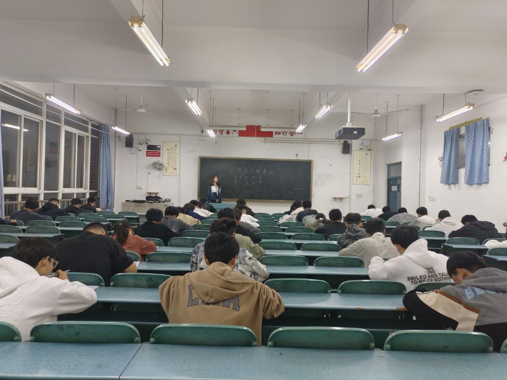 考试前一周,学术部负责人召开23级学委例会,对大学生手册的重要内容做出了仔细的解释和分析并带领他们详细的学习了大学生手册的部分章节,学术部负责人还要求各班学委向各班同学传达例会内容。考试开始前,监考人员例行宣读考场纪律,并让他们上交电子设备和与考试有关的资料。开考后,同学们认真答题,态度端正,严格遵守考场秩序。考试结束后,考生有序离场,各项工作有条不紊地进行。