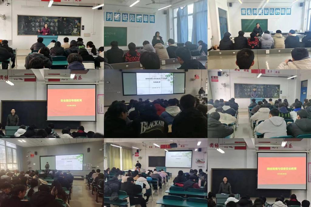 为全力筑牢校园安全防线,增强学生的安全防范意识和自我保护能力,3月5日至7日,材料学院组织领导班子、各年级辅导员、班主任召开了学生安全教育主题班会。提醒学生增强安全防范意识,保障人身和财产安全,当好自己健康的第一责任人,同时组织学院学生签订《大学生校园安全防范告知书》。