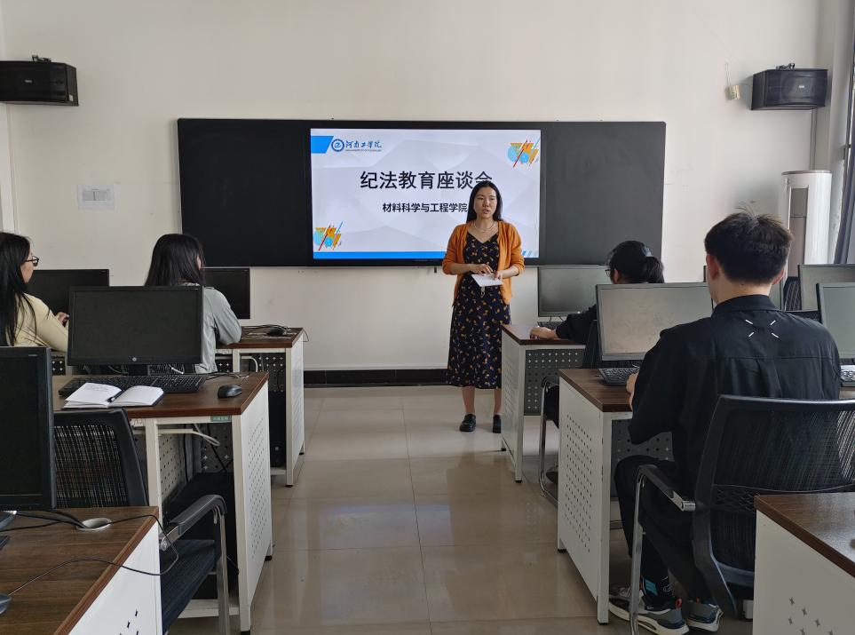 5月9日下午5点材料学院于教学五号楼307组织举办学生普及纪法教育座谈会,此次座谈会旨在深化学生对纪法知识学习,树立大学生正确价值观与行为规范。本次座谈会由团委副书记张俊芳主持。