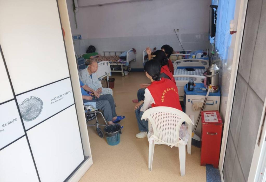 活动伊始,所有志愿者及工作人员2点在教五楼下集合完毕,由工作人员点清人数后一同乘公交车到达百佳护理院,在护理院门口工作人员分发志愿者服装,讲述志愿活动注意事项,随即志愿活动拉开帷幕。所有志愿者在护理院有序进行志愿活动,志愿者帮助护理院整理卫生,进行地板和窗户的擦拭,使老年人拥有更加舒适整洁的生活环境。与此同时,志愿者们还十分耐心地与老人们聊天,询问他们近期的身体状况,分享日常的生活趣事,在愉快的交流中,老人们的脸上都露出了开心的笑容。部分志愿者还陪伴老人观看戏剧、电视剧等,极大地丰富了老人们的老年生活。志愿活动结束后,所有志愿者在百佳护理院门口进行了合照,留下了这一珍贵而又温暖的时刻。